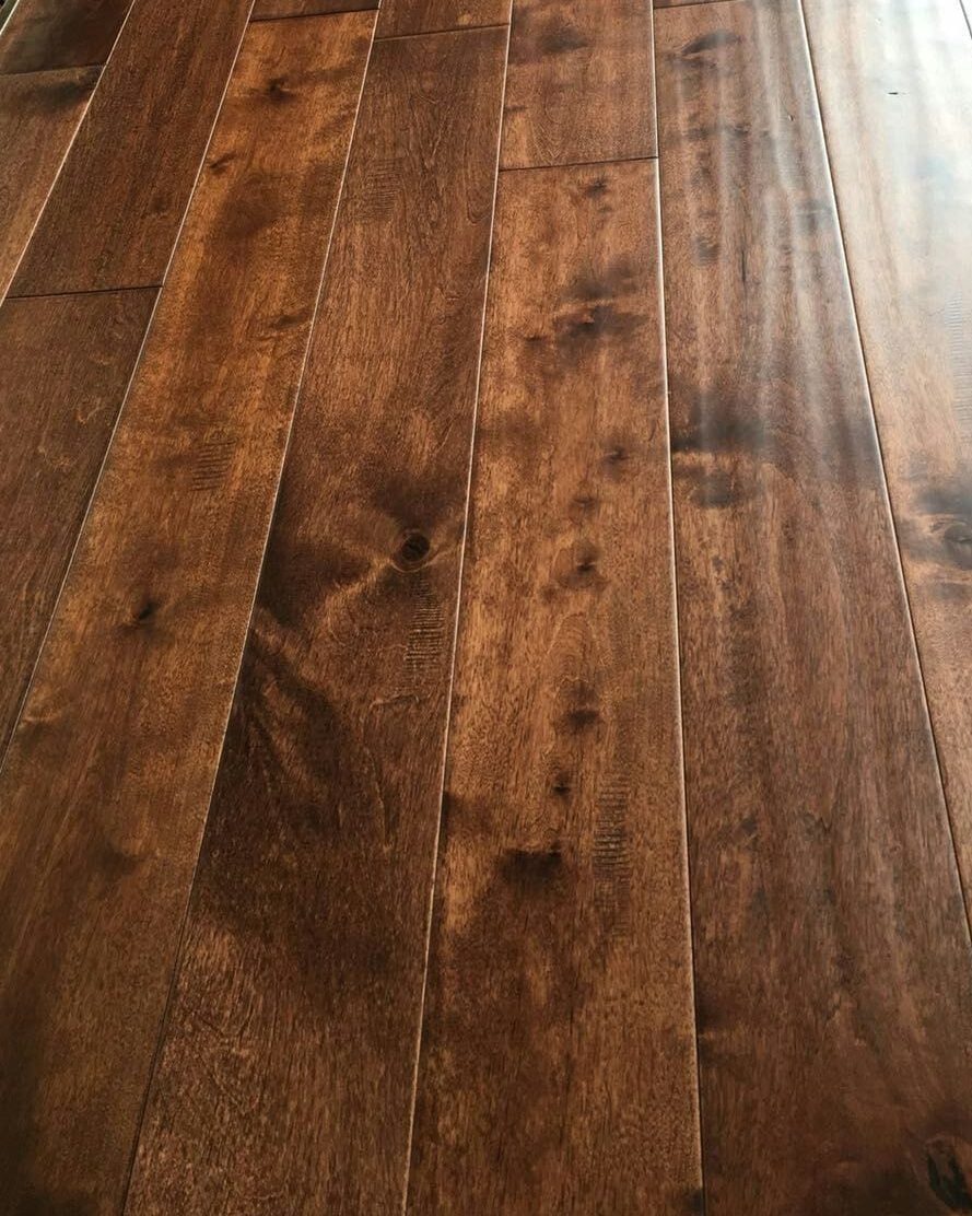 ELEMENTAL birch flooring is a two-tone character grade and better wood ranging from light cream tones to browns and red-browns mixed within boards. It's an excellent light colored natural wood flooring option and looks stunning in stain colors Honey and Chestnut for those seeking medium and darker colored flooring.