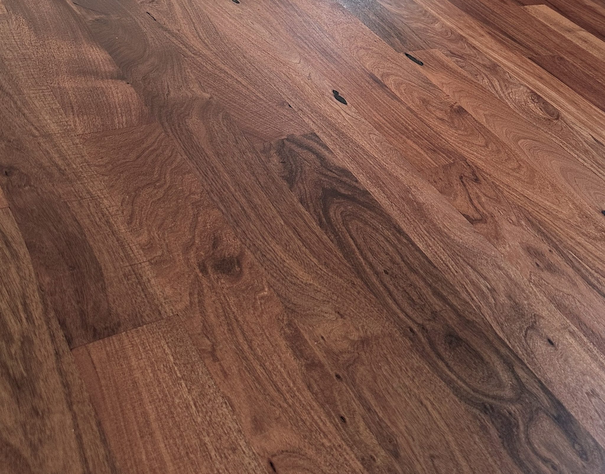Algarrobo is the name for Black Mesquite in the high desert Chaco region of Northern Argentina and Paraguay. This South American landscape shares similarities and species with the West Texas, Northern Mexico area that produces the Honey Mesquite historically used for flooring in the region. The rare and beautiful Black Mesquite (Prosopis nigra) is EXTREMELY stable and shows a range of browns and gray-browns with a beautiful grain in a rustic and better grade. It is a top choice for natural stability in a glue or nail down application.